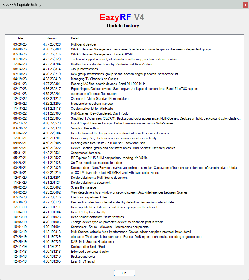 New version 4.76 and higher: WMAS Devices Management (Sennheiser Spectera and Shure ADPSM).