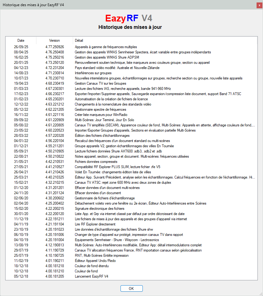 Nouveauté version 4.76 et plus: gestion des appareils WMAS (Sennheiser Spectera et Shure ADPSM).